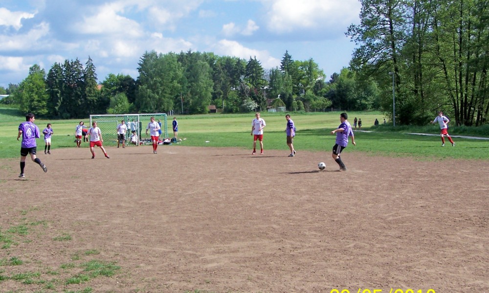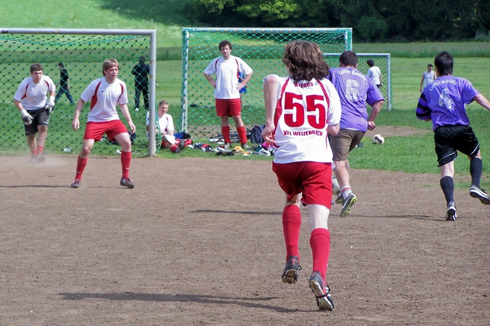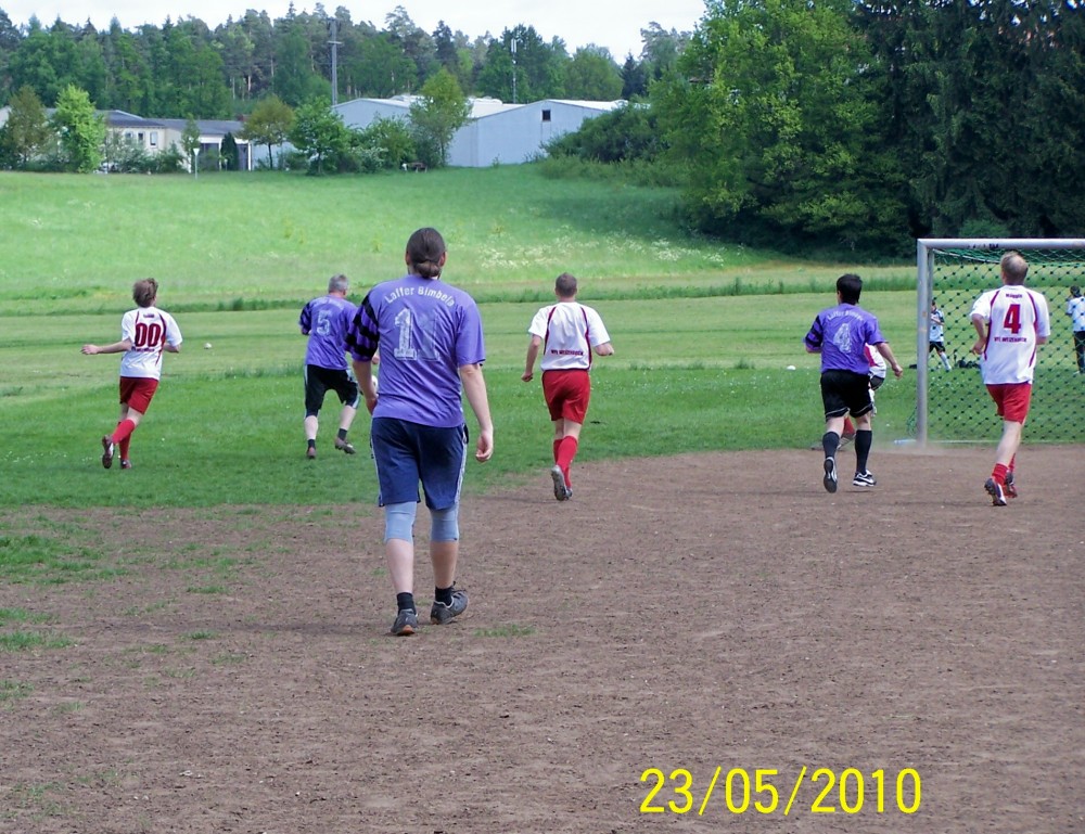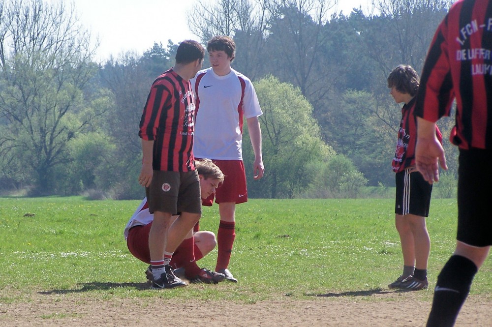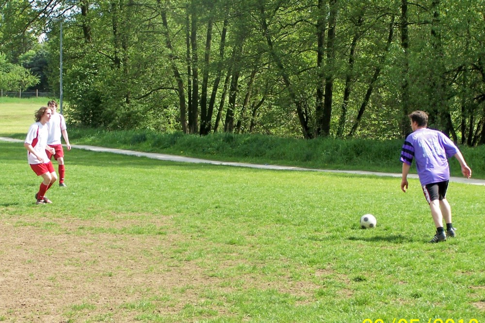 Nun kamen die Laffer besser ins Spiel: Martin erkämpfte sich ein ums andere Mal gute Gelegenheiten – einzig der Torhüter stand wie ein Felsen in der Brandung. Mitte der zweiten Hälfte wurde dann Montalto in aussichtsreicher Position vom Feld geräumt – Elfmeter oder nicht? Salomonisch einigte man sich auf Freistoß ca. 5 Meter halblinks vorm Tor. Wandervogel Winter legte sich den Ball zurecht und passte zur Überraschung der Prompts kurz zu dem vors Tor gelaufenen Brandl, der keine Mühe hatte aus einem Meter zur 3:2-Führung zu vollstrecken!