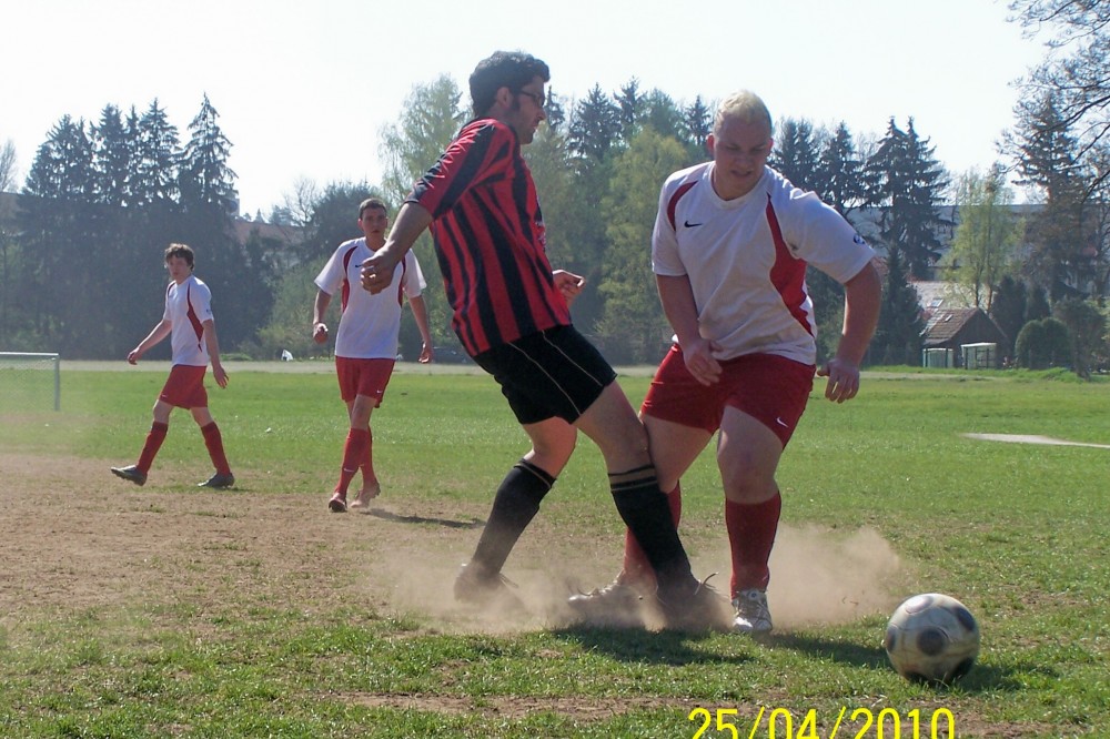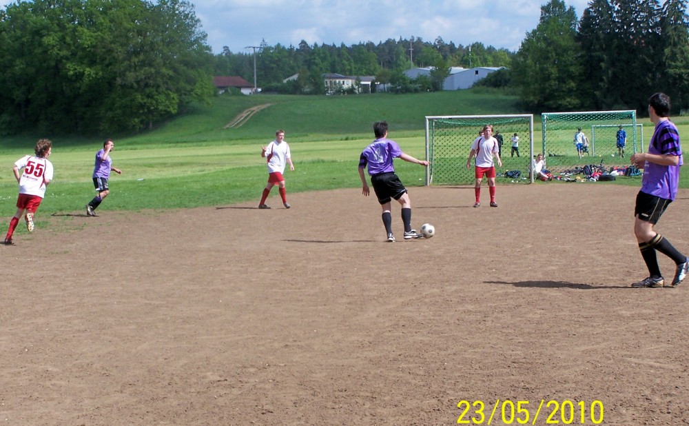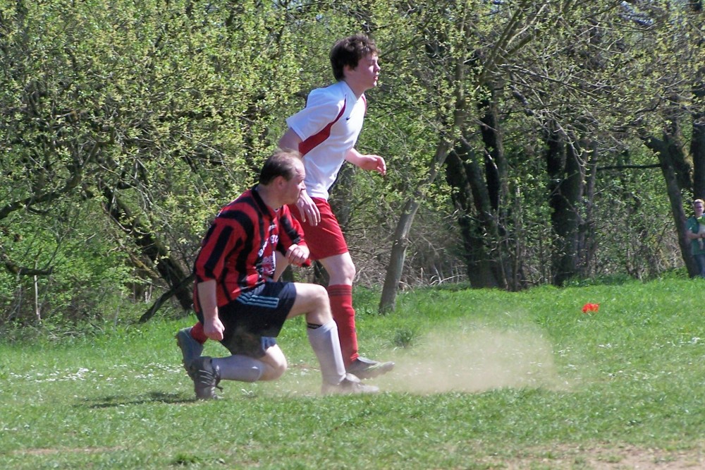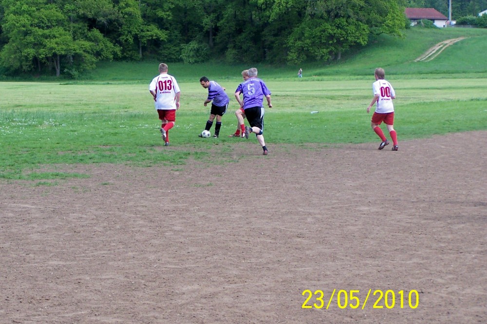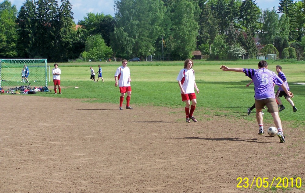 Nun kamen die Laffer besser ins Spiel: Martin erkämpfte sich ein ums andere Mal gute Gelegenheiten – einzig der Torhüter stand wie ein Felsen in der Brandung. Mitte der zweiten Hälfte wurde dann Montalto in aussichtsreicher Position vom Feld geräumt – Elfmeter oder nicht? Salomonisch einigte man sich auf Freistoß ca. 5 Meter halblinks vorm Tor. Wandervogel Winter legte sich den Ball zurecht und passte zur Überraschung der Prompts kurz zu dem vors Tor gelaufenen Brandl, der keine Mühe hatte aus einem Meter zur 3:2-Führung zu vollstrecken!