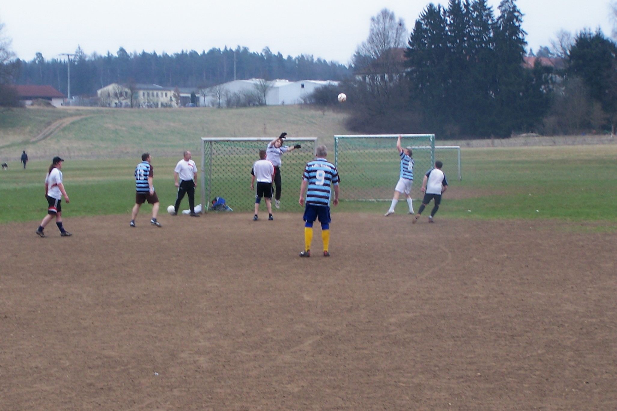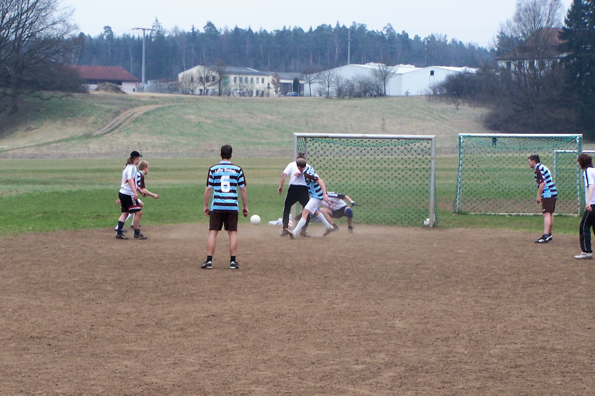 Bei bewölktem Himmel trafen sich die Teams von Espanyol Bimbelona und VFL Weizenbock II zum freundschaftlichen Vergleich. Das individuell besser besetzte Team der Böcke schnürte uns von Anfang an in der eigenen Hälfte ein. Ich glaube wir sind nach fünf Minuten das erste Mal über die Mittellinie gekommen. Doch mit der Zeit ergab sich dann die ein oder andere Kontermöglichkeit für uns. Nachdem Meußel bereits einmal am Torhüter der Böcklein gescheitert war, fiel die schmeichelhafte Führung für die Bimbelonas. Der freigespielte Berger konnte nur noch durch ein Foulspiel am Torschuß gehindert werden. Also gab es Elfmeter für die Firma. Meußel behielt die Nerven und verwandelte sicher zum 1:0. Am Spielverlauf änderte das wenig. Angriff auf Angriff rollte auf das Tor von Espanyol zu. Glasklare Möglichkeiten blieben allerdings Mangelware. Und so ging es mit der glücklich erkämpften Führung in die Pause.